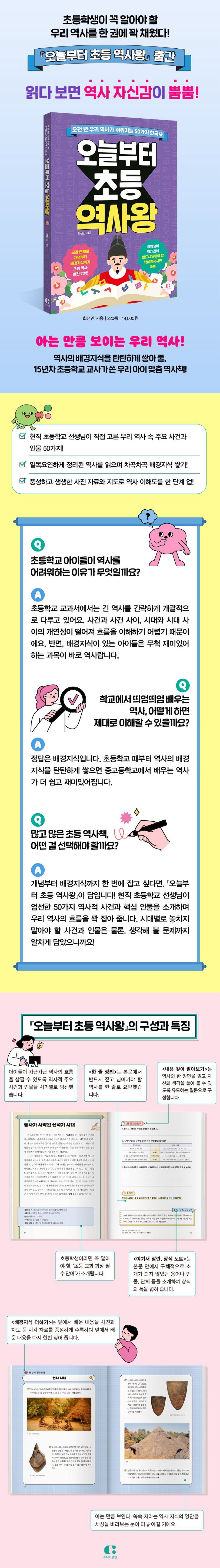 本書由有 16年教學經驗的資深小學教師「자몽쌤(柚子老師)」 親自編寫,延續暢銷系列《오늘부터 초등왕》與《오늘부터 초등 지식왕》的教育理念,這次將 韓國五千年歷史濃縮為50個必知事件與人物,幫助孩子建立完整的歷史脈絡。
